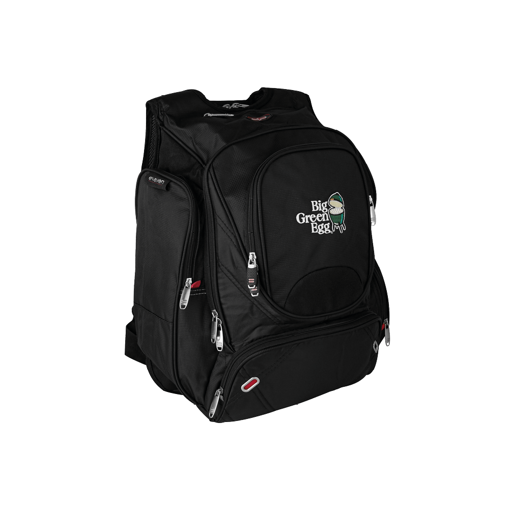 Wochenendausflug, Geschäftsreise, auf dem Weg zur Arbeit oder zur Vorlesung? In diesem robusten Nylon-Rucksack kannst du bequem all deine Sachen verstauen. Der Rucksack hat hinten ein praktisches Fach für einen max. 17 Inch großen Laptop. Das Fach hat einen Reißverschluss zum schnellen Öffnen, so dass du vor Ort oder im Zug bequem etwas nachschauen kannst, zum Beispiel wenn du ein Rezept für das Big Green Egg suchst. Überhaupt kein Problem. Du nimmst ein Tablet mit? Das kannst du im Hauptfach des Rucksacks sicher in die speziell dafür gemachte Hülle mit elastischem Band verstauen.
