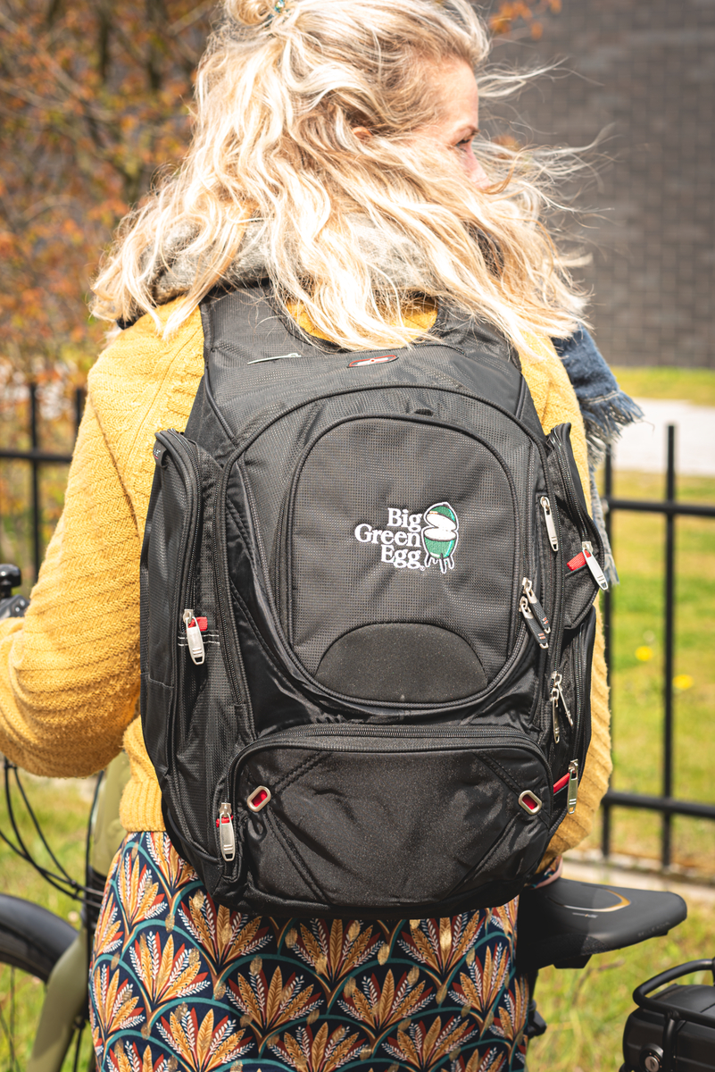 Aber es gibt noch mehr ins Auge springende und versteckte Aufbewahrungsmöglichkeiten. Das Hauptfach hat innen auf beiden Seiten praktische Seitenfächer. Außen an diesem original Big Green Egg-Rucksack befindet sich ein großes Vorderfach mit Schlüsselanhänger und drei zusätzlichen Seitenfächern mit Reißverschluss. Darüber hinaus ist der Rucksack mit einer praktischen Kopfhörer-Öffnung versehen.