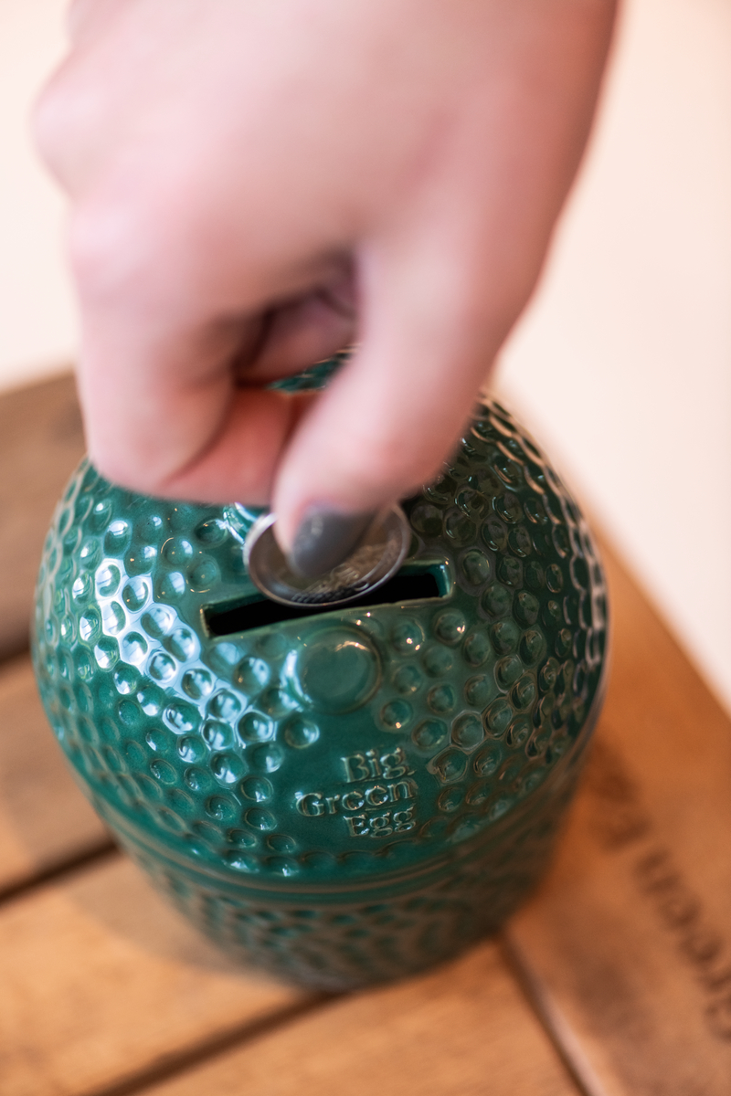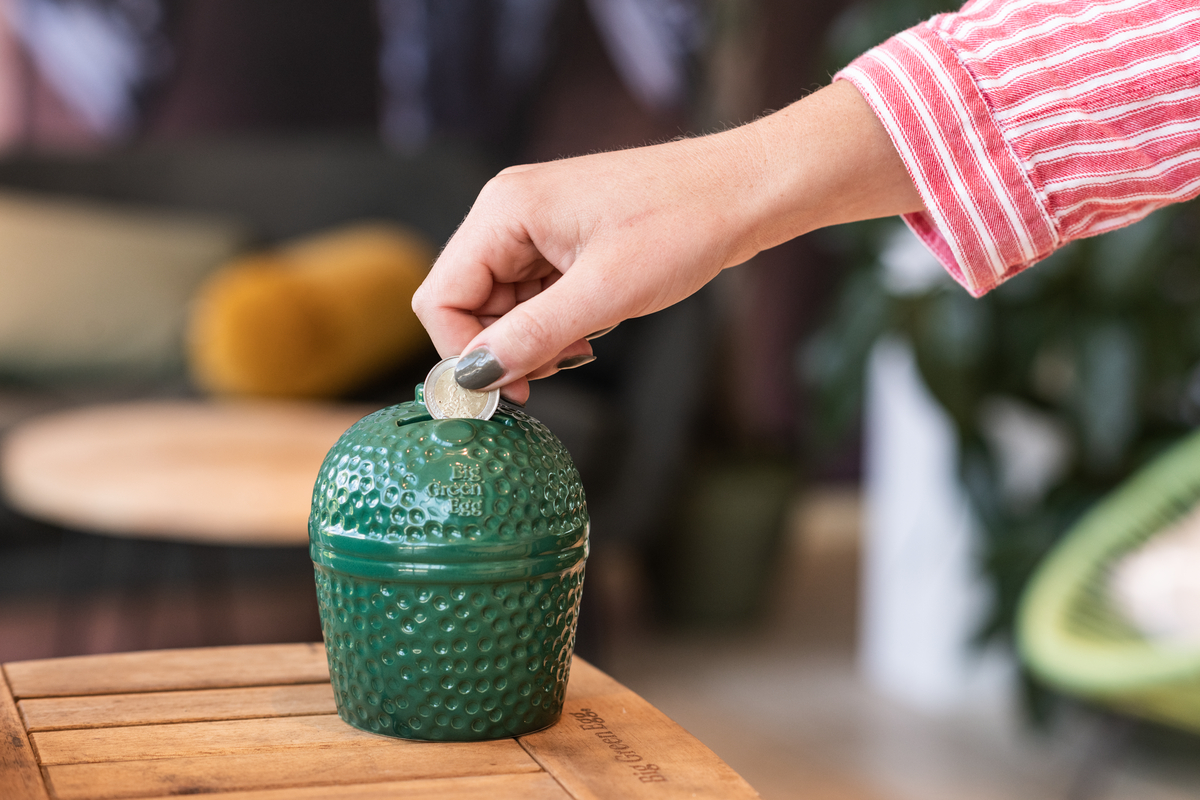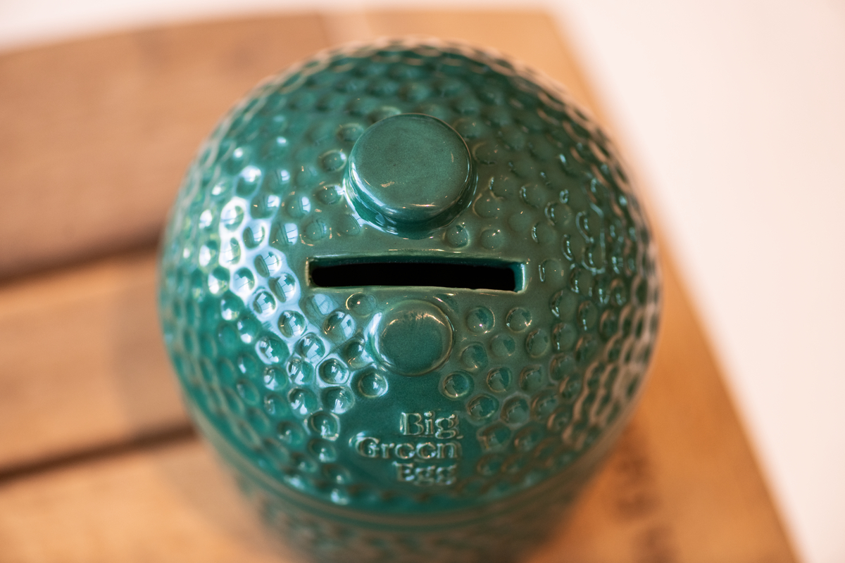 Du möchtest für ein Big Green Egg sparen? Dann kommt diese authentische Big Green Egg-Spardose wie gerufen! Die Spardose ist eine Miniaturversion des The Original, inklusive des Big Green Egg-Logos und der charakteristischen Dellen in der Keramik. Immer wenn du die Spardose siehst, wirst du daran erinnert, wofür du sparst. So wird das Sparen doch gleich viel einfacher und angenehmer!