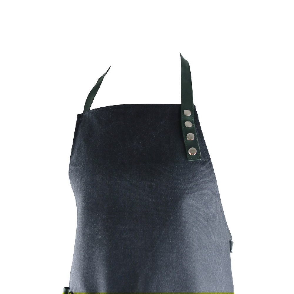 Auf der Vorderseite dieser Canvas-Schürze befinden sich zwei Taschen, in denen Sie Ihre BBQ-Zange, den Spatel oder ein Stabfeuerzeug aufbewahren können. Sie befestigen die Schürze mit einem Lederband und 2 Metallriemen. Obwohl es sich bei dem gewachsten Canvas um ein robustes Material handelt, fällt die Schürze schön geschmeidig. Das Halsband lässt sich individuell verstellen. Sodass es allen Trägern passt.