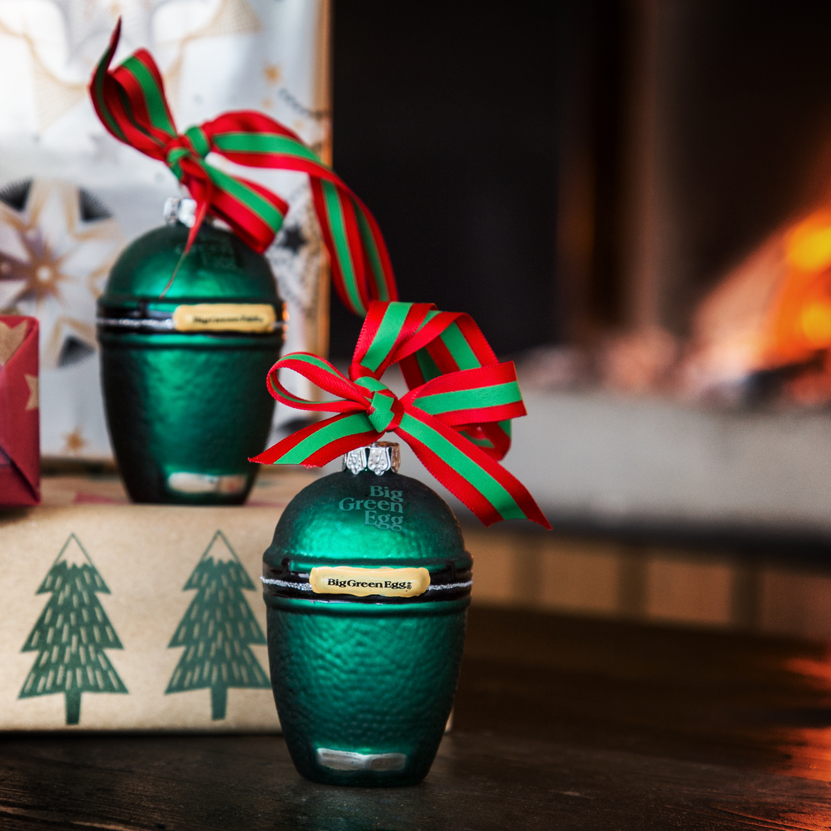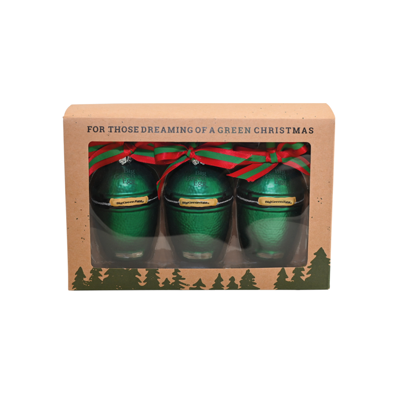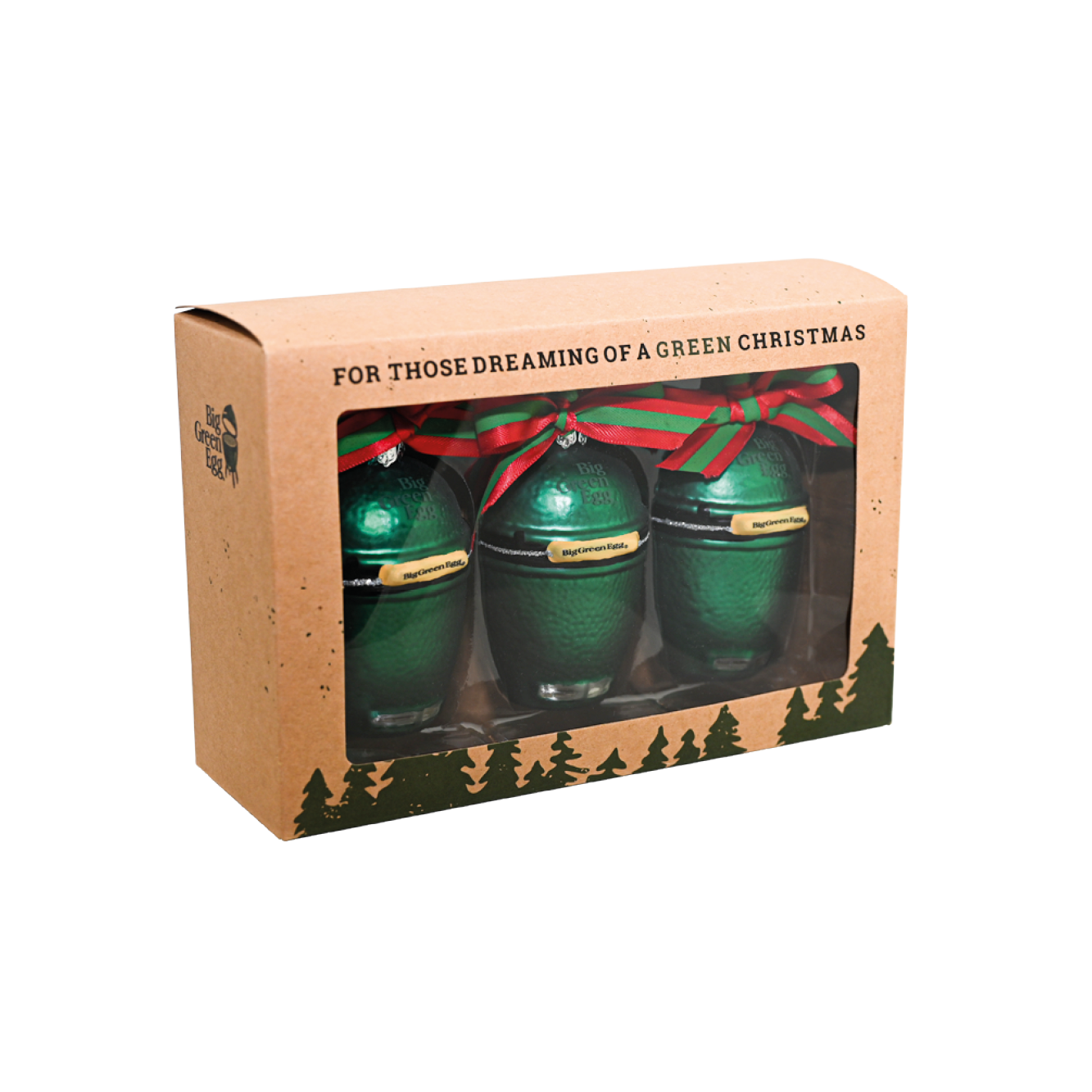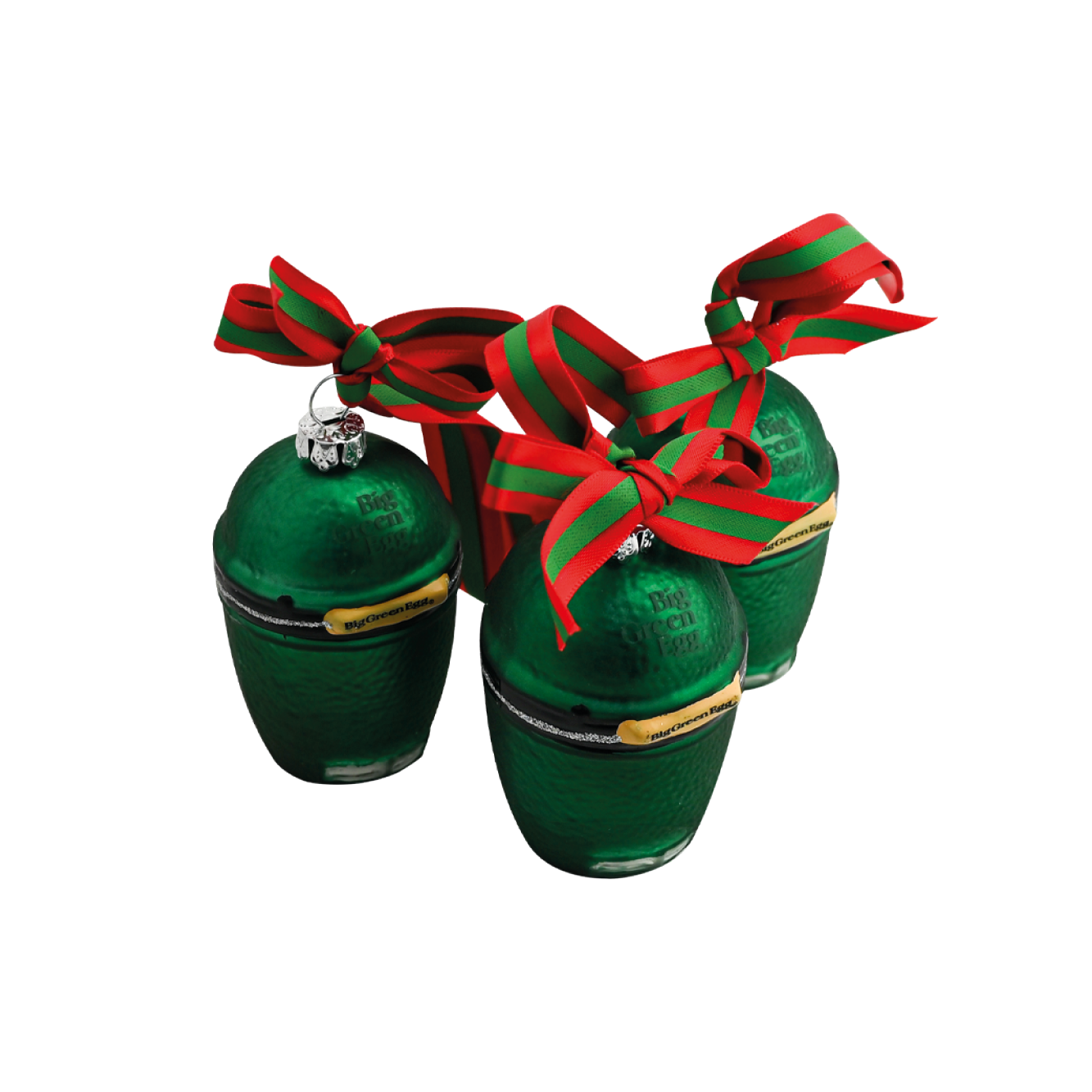 Dank dieses dekorativen Trios aus Big Green Egg Mini-Christbaumkugeln verwandelst du deinen Weihnachtsbaum in einen echten Hingucker, denn damit sieht er einfach fantastisch aus! Die Mini-EGGs sind – ebenso wie The Original – mit einem Logo auf der Kuppel und auf den Handgriffen versehen. Und was verleiht ihnen den letzten Schliff? Das rotgrüne Bändchen an der Öse, denn daran hängst du die originellen Christbaumkugeln an den Baum.