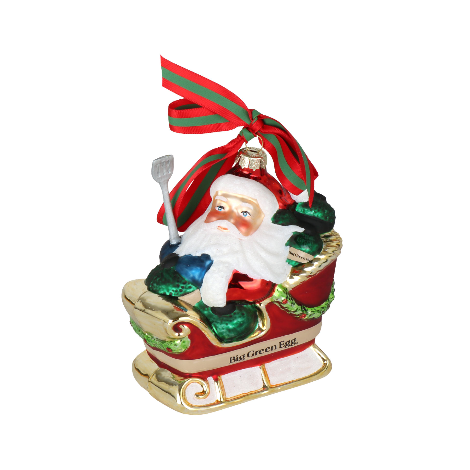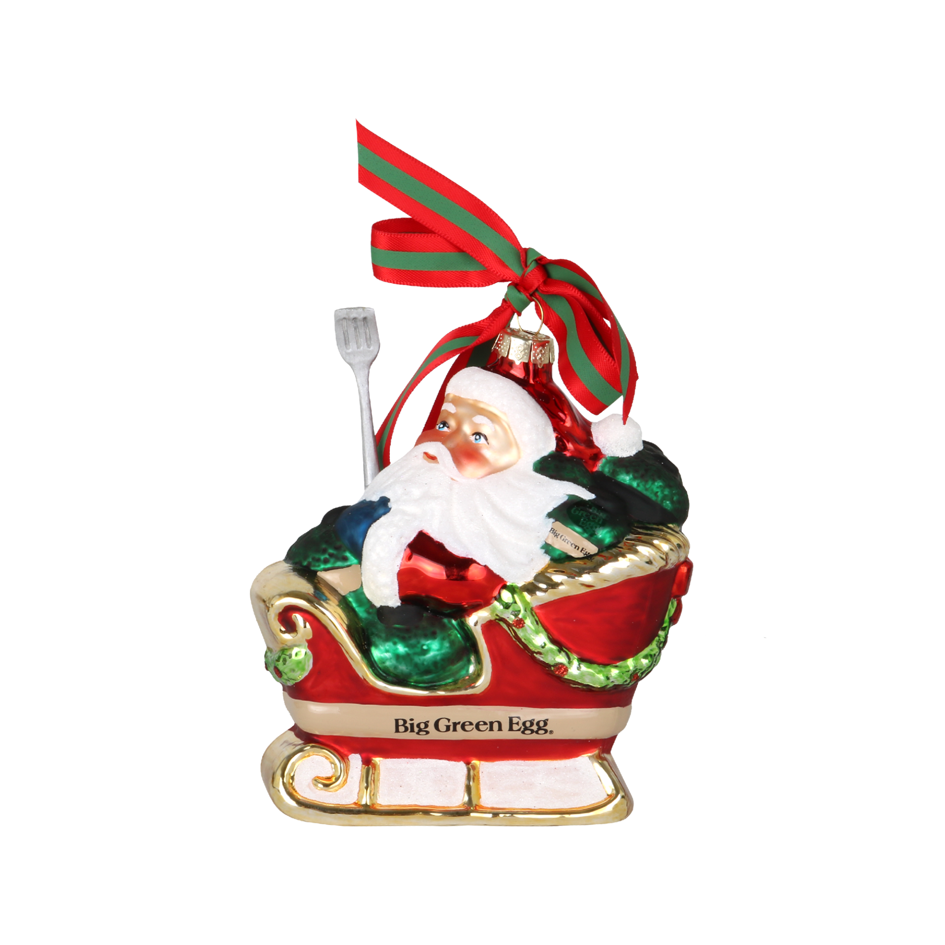 Grüße vom Weihnachtsmann: Er ist schon unterwegs zu Ihrer Küche! In Gestalt einer witzigen Christbaumkugel mit Weihnachtsmann, der allerhand EGGs in seinem Schlitten mitbringt. Diese Big Green Egg-Christbaumkugel ist ein echter Hingucker in Ihrem Weihnachtsbaum. Erfrischend anders und daher umso charmanter.