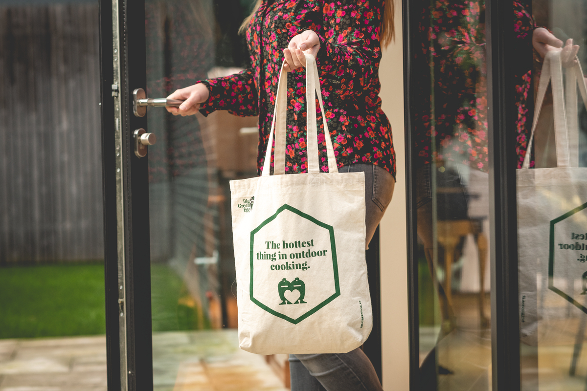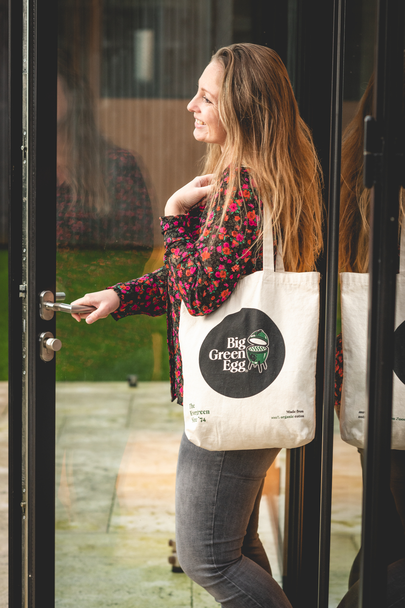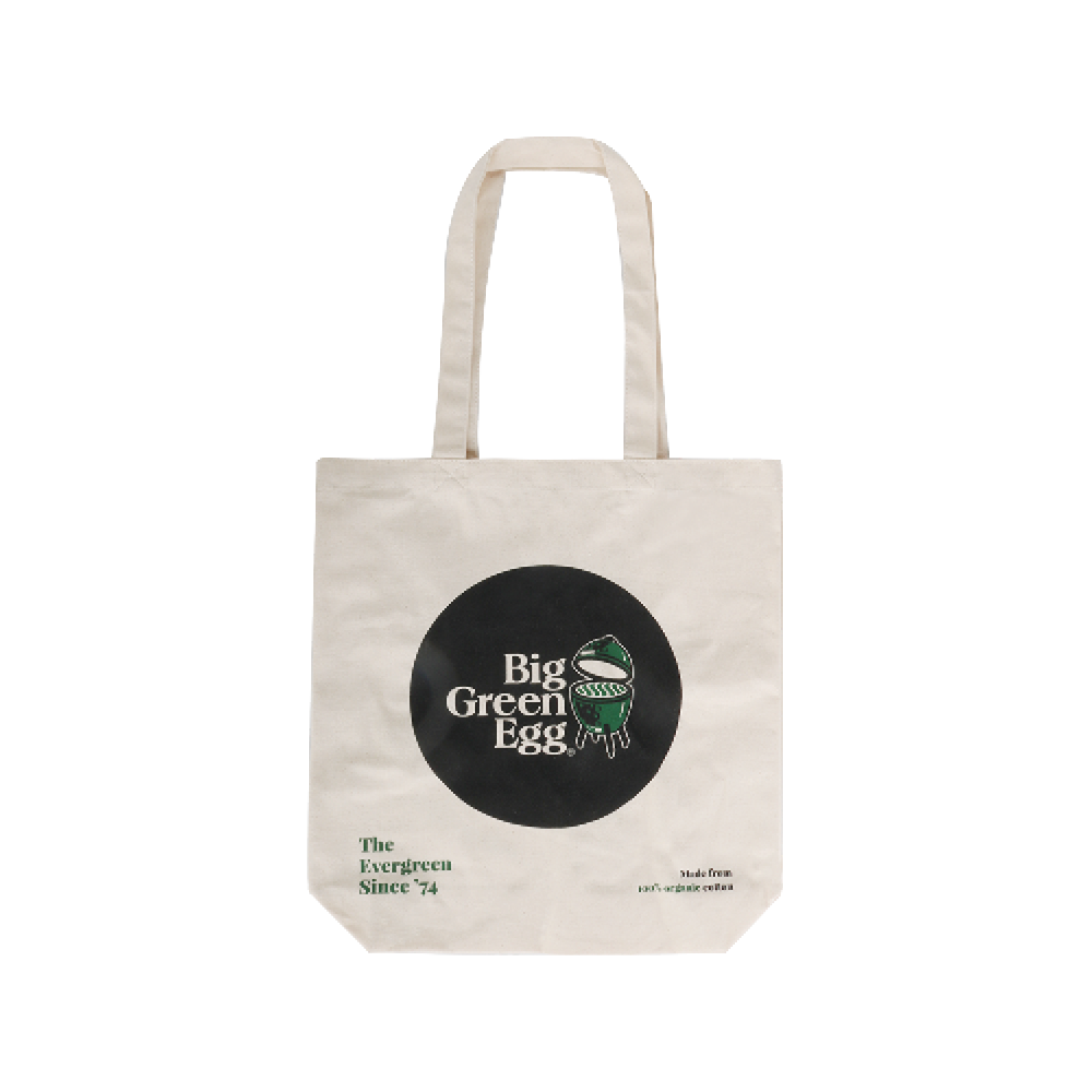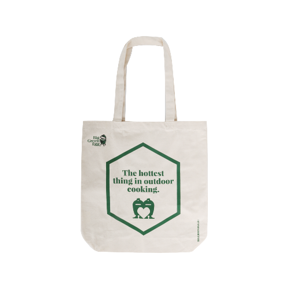 Wollen Sie Einkäufe für ein neues Gericht auf Ihrem Big Green Egg machen oder haben Sie einfach Lust auf einen kurzen Spaziergang? Mit dem Canvas-Shopper von Big Green Egg aus 100 % Bio-Baumwolle zeigen Sie Stil. Außerdem ist diese Baumwolltasche stabil genug für einen Besuch beim Metzger oder Gemüsehändler. Eine Seite ist mit dem Big Green Egg-Logo bedruckt. Und auf der anderen Seite können alle sehen, was Sie Schönes zu bieten haben: „The hottest thing in outdoor cooking.“ Oder sind etwa Sie damit gemeint?