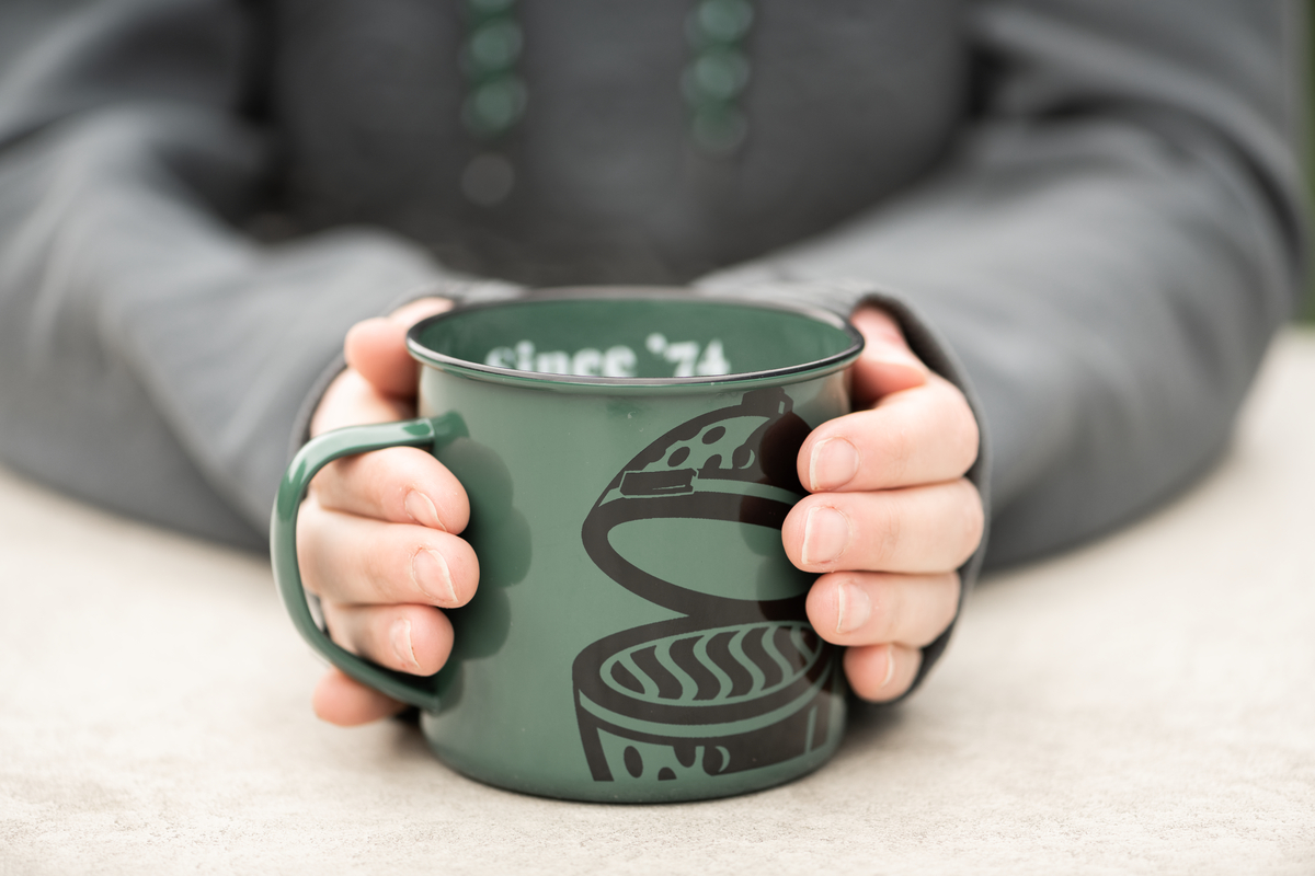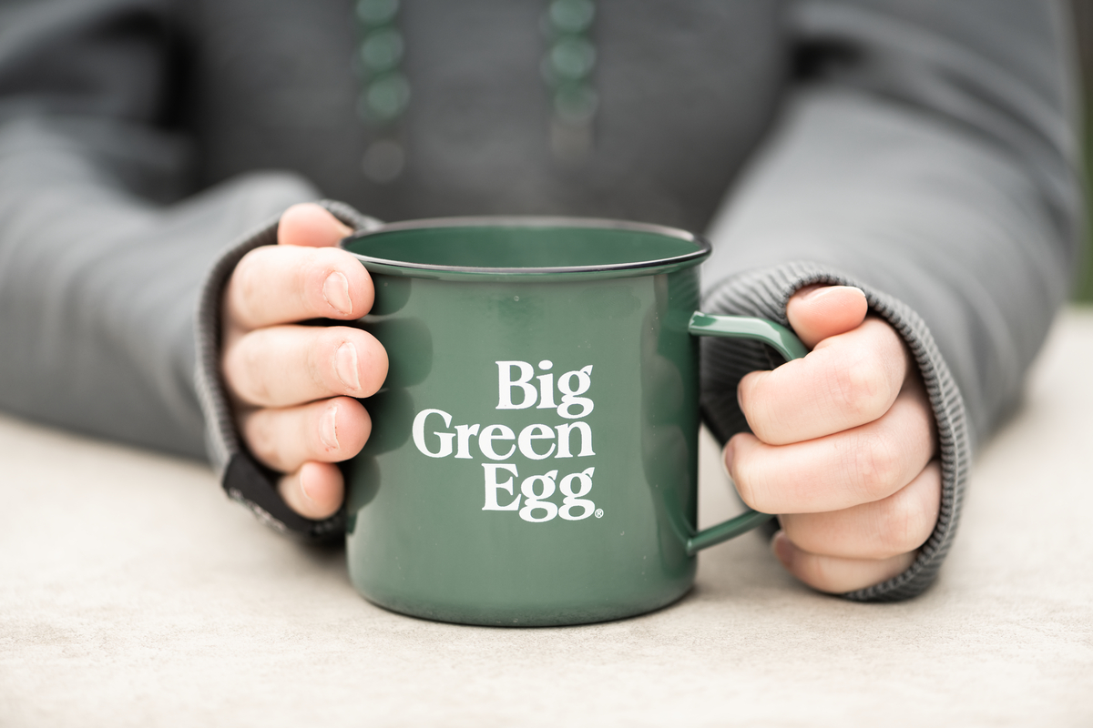 Musst du früh aufstehen, um ein Low & Slow-Gericht in deinem EGG zuzubereiten? Dann ist dieser emaillierte Kaffeebecher im Vintage-Look bestimmt ein willkommener Begleiter. Schon nach dem ersten Schluck kannst du „Since 74“ auf der Innenseite deines Bechers lesen. Der Becher ist dunkelgrün; auf der einen Seite ist er mit dem Big Green Egg-Logo bedruckt und die andere Seite ziert ein EGG. Dieser leichte Big Green Egg-Becher darf in deiner Outdoorküche nicht fehlen. Obendrein eignet er sich perfekt für Picknicks und für deine Camping-, Boots– oder Wanderausrüstung.