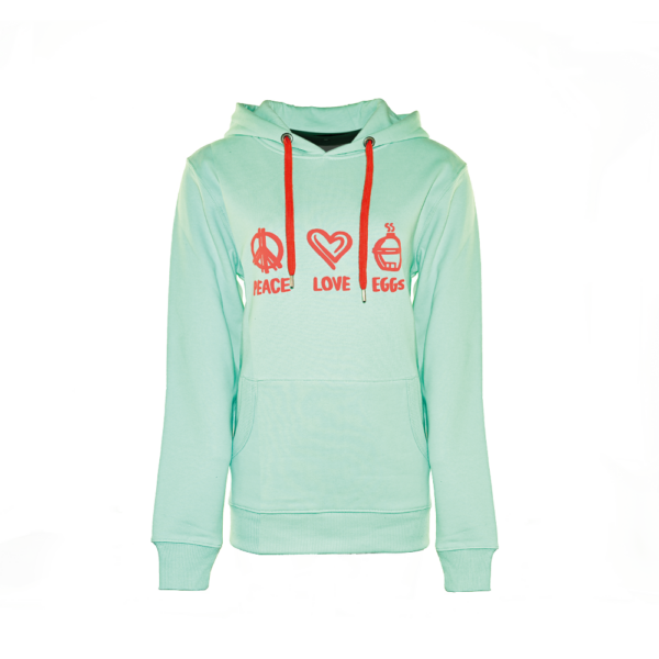 Hoodie – Peace, Love, EGGs – Mint/Coral