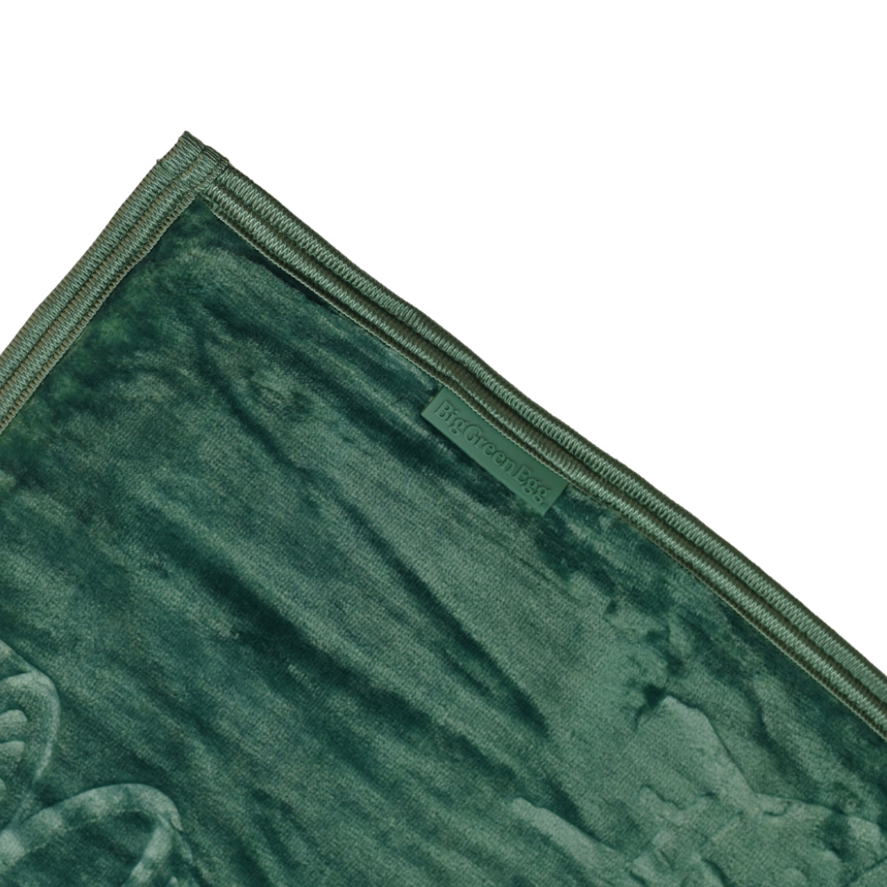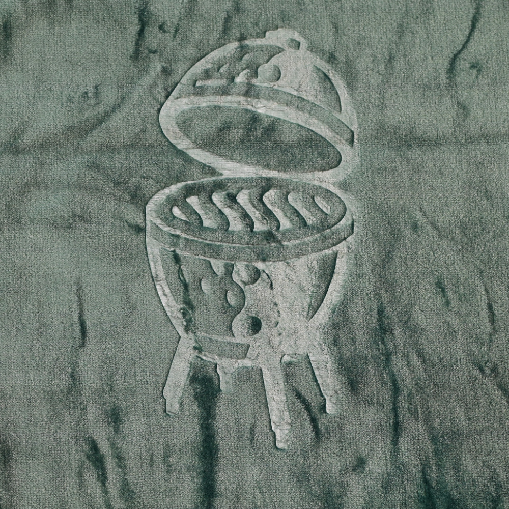 Die Fleecedecke ist mit einem glänzenden Rand versehen und hat ein Gummietikett mit dem Big Green Egg-Logo. Du kannst die Decke bei 30°C in der Waschmaschine waschen.