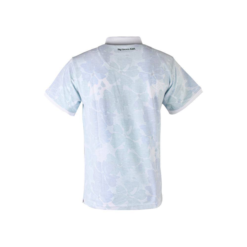 Kleider machen Leute, auch auf dem Golfplatz. Wenn du statt eines basic Golfpolos dieses Poloshirt anziehst, fällst du dort nicht nur durch deinen fantastischen Golfschlag auf. Ein schönes Detail ist der Inside-Out-Print. Das Blumenmuster dieses weißen Polos befindet sich auf der Innenseite des Shirts. Dadurch sind außen wundervolle, subtile Farbabstufungen zu sehen. Kragen und Ärmelbündchen des Poloshirts sind reinweiß und in Brusthöhe ist ein kleines aufgesticktes Big Green Egg zu sehen. Die Knopfleiste ist mit einem roten „The Original Big Green Egg Sportswear“-Label versehen. So sehen alle, dass du dich für „The Original“ entschieden hast.