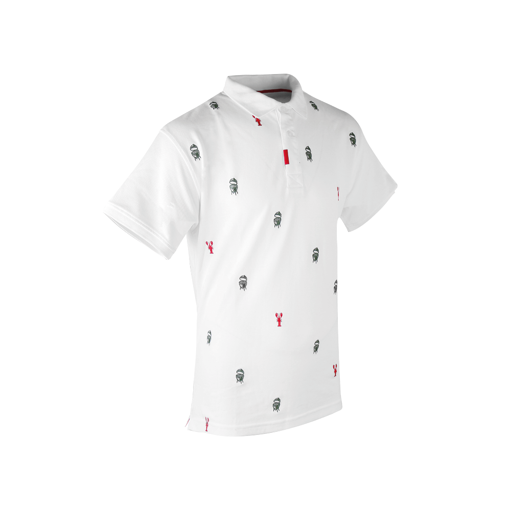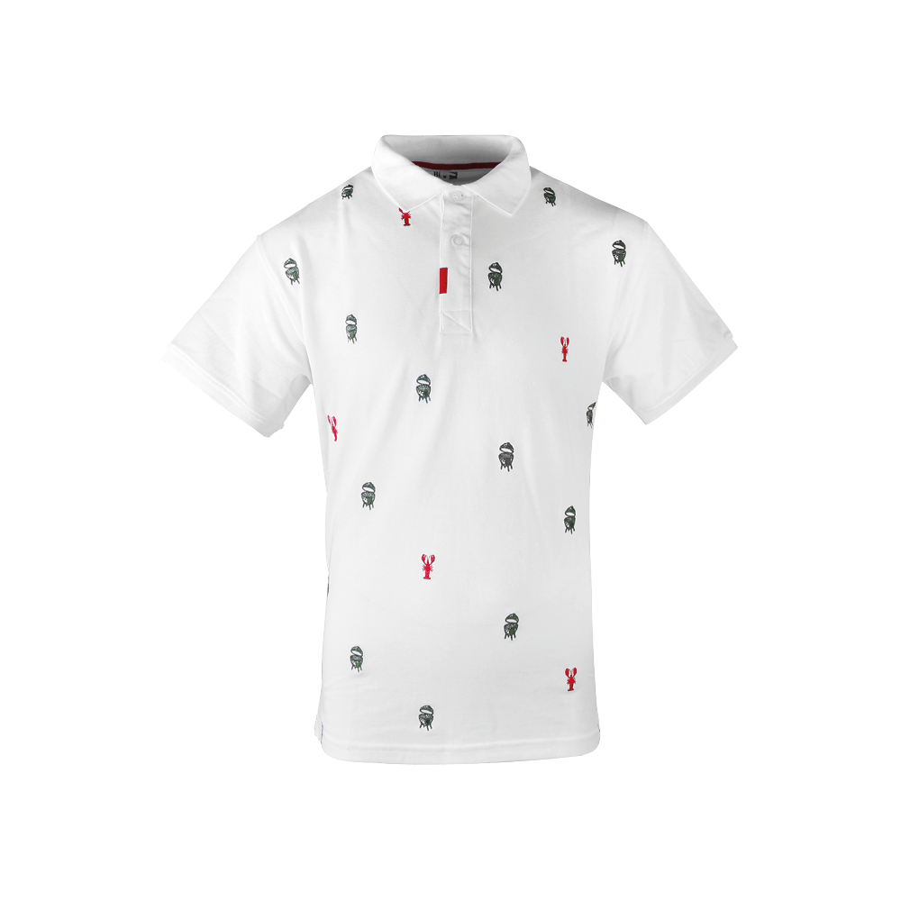 Die üblichen weißen Golfpolos sind dir zu langweilig? Look no further! Die kleinen aufgestickten Mini-Big Green Eggs und die roten Krebse auf der Vorderseite dieses Poloshirts machen es stilvoll und spannend. Obern auf dem Rücken steht übrigens ganz dezent in grüner Schrift „Big Green Egg“. Die Knopfleiste ist mit einem roten „The Original Big Green Egg Sportswear“-Label versehen. Die Kombination aus Bio-Baumwolle und Polyester verleihen dieser sportlichen Golfbekleidung einen wunderbaren Tragekomfort.