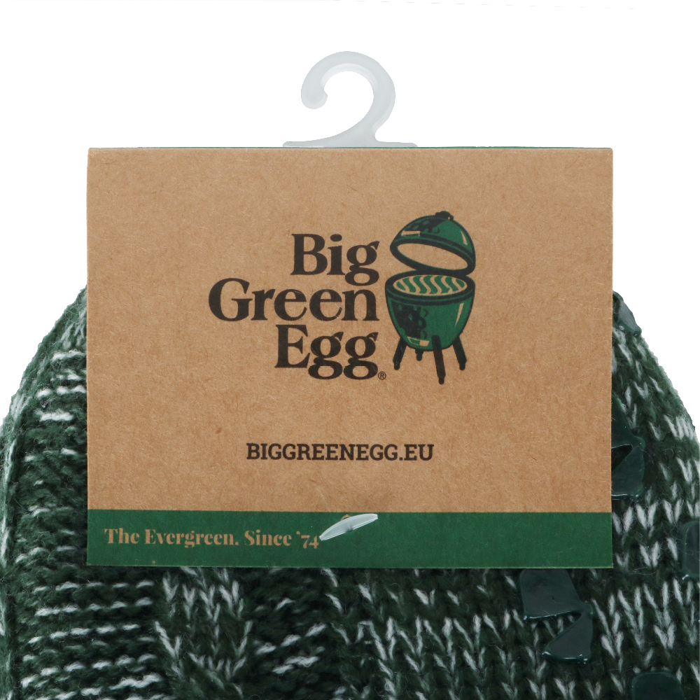 An der Vorderseite sind die Socken mit einer Kordel versehen, an der niedliche kleine EGGs aus Holz baumeln. Und an den Seiten prangt ein cooles Big Green Egg-Emblem. Erhältlich in zwei Größen: 39–42 und 43–46.