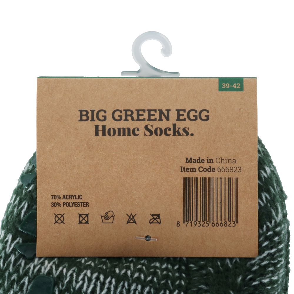 Die Big Green Egg-Socken sind innen mit einem weichen Fell ausgekleidet und daher besonders warm. Unglaublich behaglich und kuschelig. Ideal, um es sich damit auf dem Sofa vorm offenen Kamin mit einem köstlichen Glas Wein gemütlich zu machen. Auch perfekt, wenn Sie bei frostiger Kälte mal eben in Ihre Gummistiefel schlüpfen möchten, um nach dem Schmorbraten in Ihrem EGG zu schauen. Und dann schleunigst wieder zurück ins Haus!