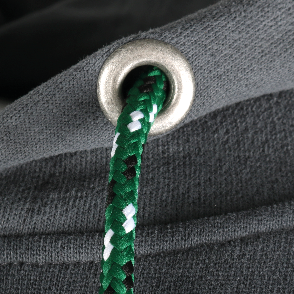 Das Big Green Egg-Hoodie besteht aus 75 % Bio-Baumwolle und 25 % Polyester.