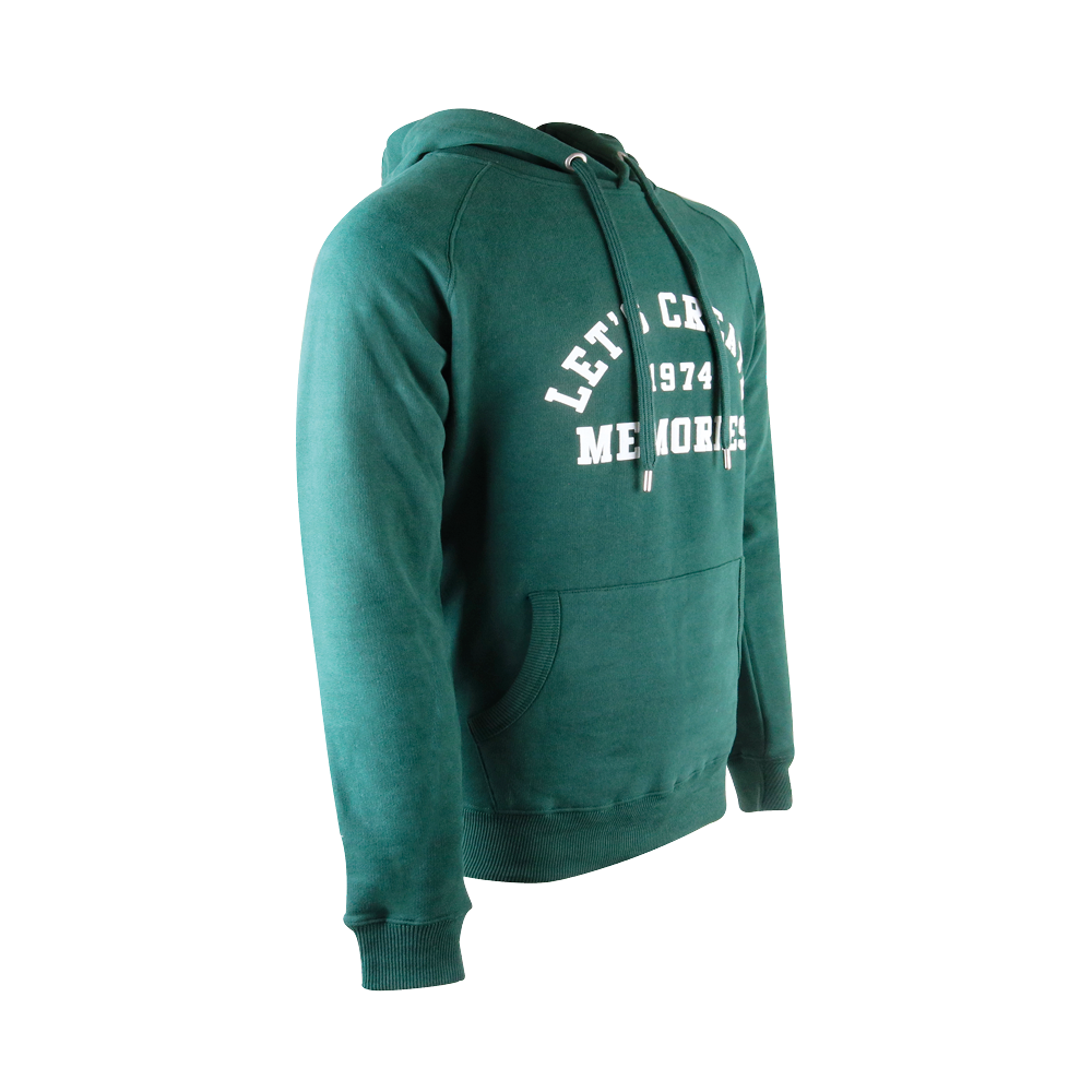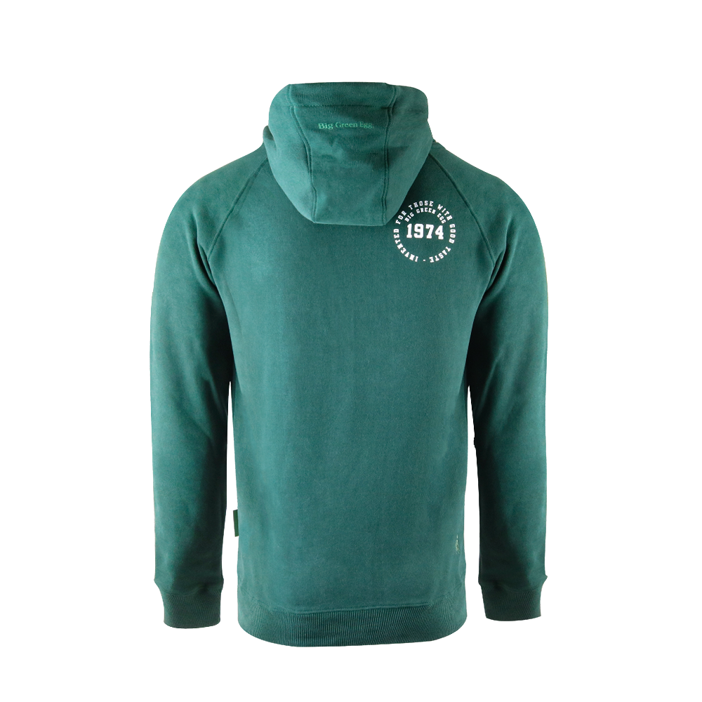 Die Botschaft ist eindeutig: Let’s create memories! Wenn du diesen dunkelblauen Unisex-Hoodie trägst, kommen diesbezüglich keine Zweifel auf, denn der weiße 3D-Print auf dem Vorderteil ist sehr aussagekräftig. Darüber hinaus überzeugt dieser komfortable Hoodie noch mit einigen dezenten Details: Auf der rechten Schulter prangt in weißer Schrift ein „Invented for those with good taste“-Stempel, rechts unten auf dem Rücken befindet sich ein grünes, aufgesticktes Big Green Egg-Logo und auf der Kapuze steht der Text „Big Green Egg“. Natürlich ist das Vorderteil dieses Hoodies mit einer praktischen Kängurutasche versehen, zum Aufbewahren von Kleinigkeiten oder für eine bequeme Handposition.