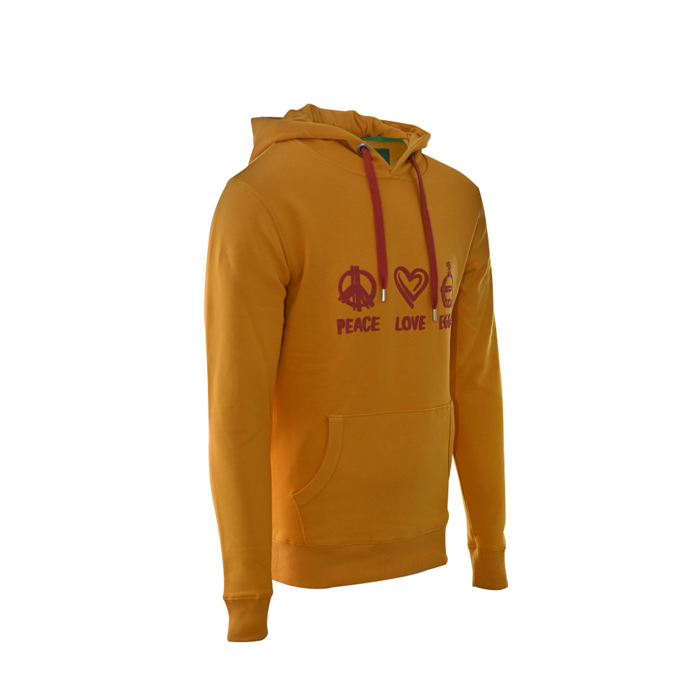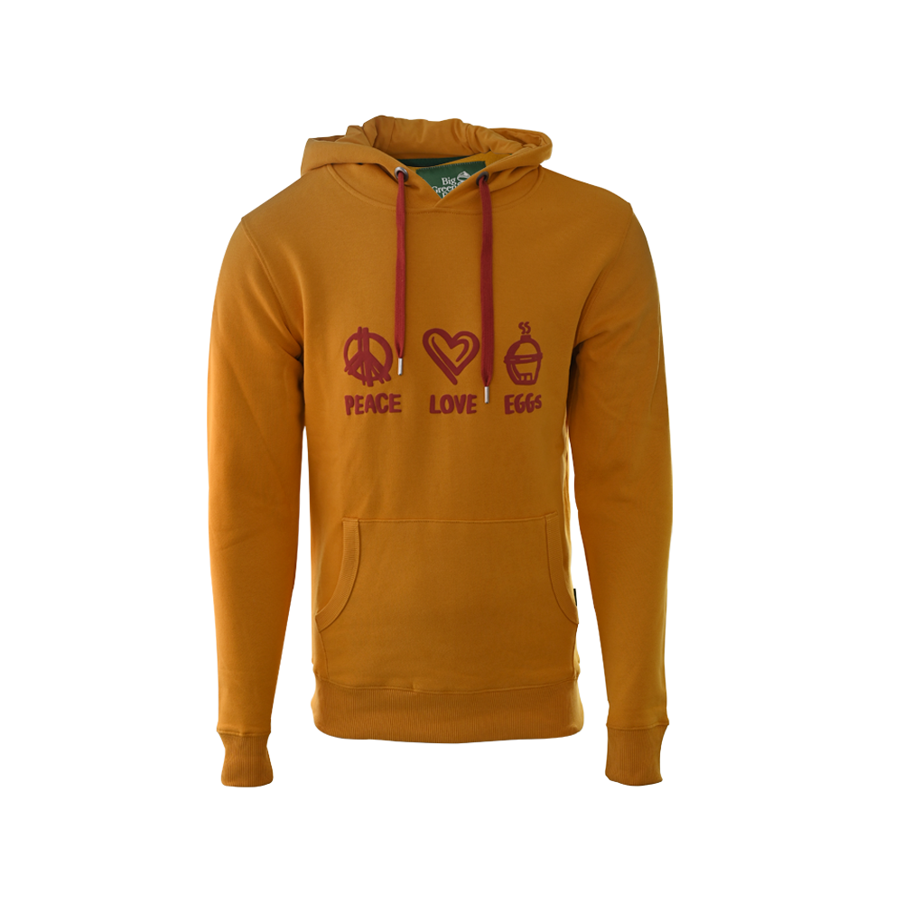 Peace, Love & EGGs. Dieser bequeme Hoodie für Damen vereint alle schönen Elemente des Lebens. Der Burgund 3D-Druck auf dem Vorderteil zeigt, wofür du stehst. Herrlich kuschelig, wenn du auf dem Big Green Egg bei kühlem Wetter etwas Leckeres zubereiten möchtest, aber auch super für entspannte Sonntage auf dem Sofa oder für den Weg ins Fitnessstudio. In diesem bequemen, ockergelbe Hoodie mit Kängurutasche siehst du immer spitze aus!