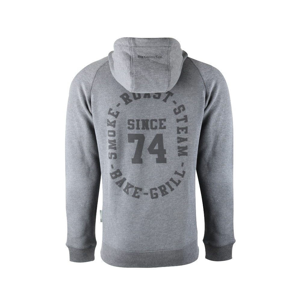 Möchtest du allen zeigen, wofür du und dein Big Green Egg stehen? Mit diesem coolen Hoodie mit der Aufschrift „Since ‘74“ in Hellgrau brauchst du nichts mehr zu erklären. Der dunkelgrüne 3D-Print „Smoke, Roast, Steam, Bake, Grill“ auf dem Rückenteil erklärt alles. Trägst du diesen Pullover auch, wenn du nicht am EGG stehst? Dann könnte es sein, dass dein Gesprächspartner sich selbst spontan für eine schmackhafte Kochsession auf deinem EGG einlädt.