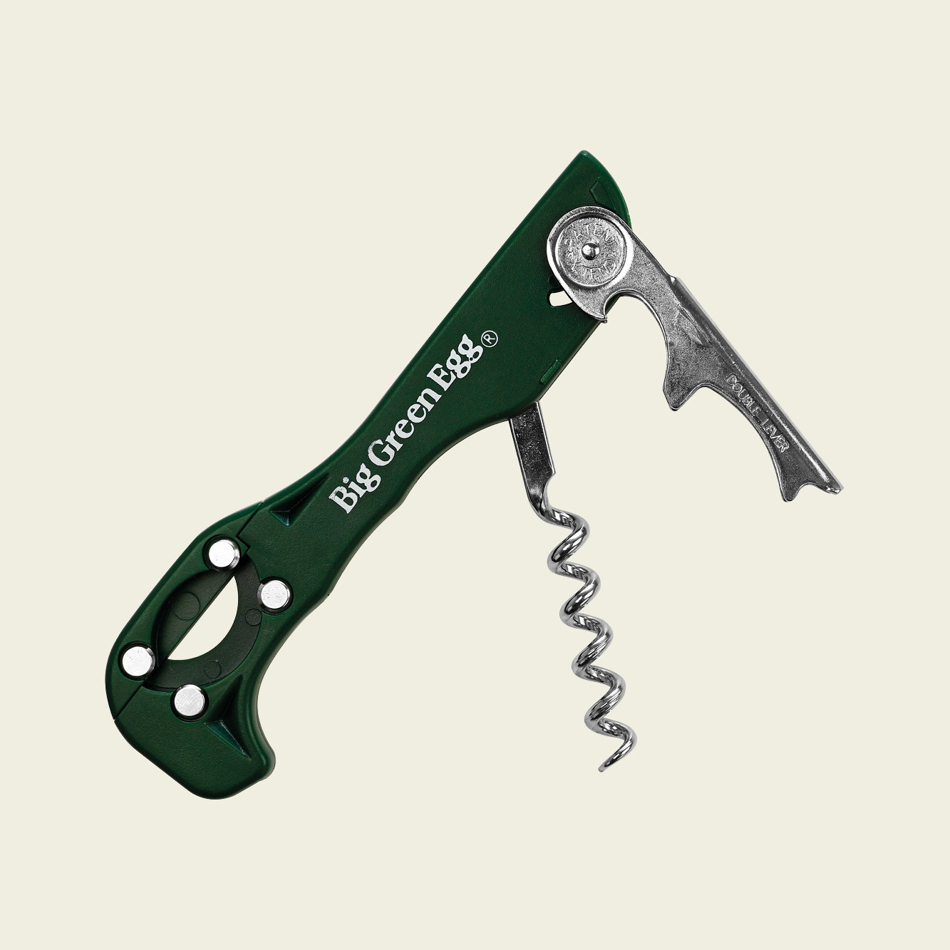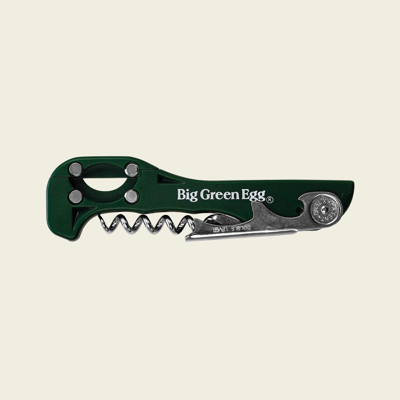 Zu einem köstlichen Essen gehört eine gute Flasche Wein. Beim EGGen ist ein Korkenzieher also nahezu unverzichtbar. Mit diesem Big Green Egg Korkenzieher kannst du die Weinflaschen künftig stilvoll öffnen. Denn dieser Korkenzieher, auch Sommeliermesser genannt, ist in Big Green Egg-Grün gehalten und auf beiden Seiten mit dem Big Green Egg-Logo versehen.