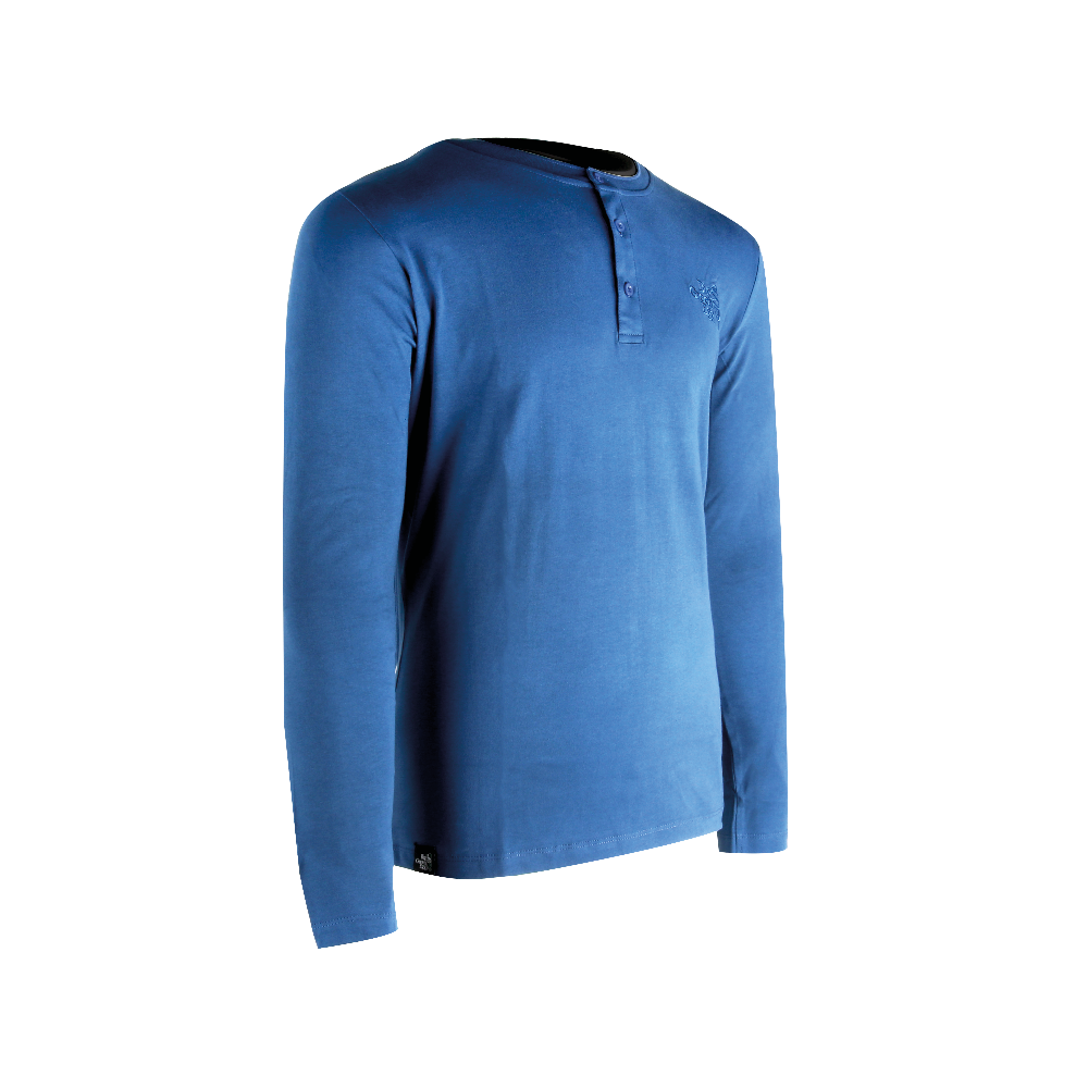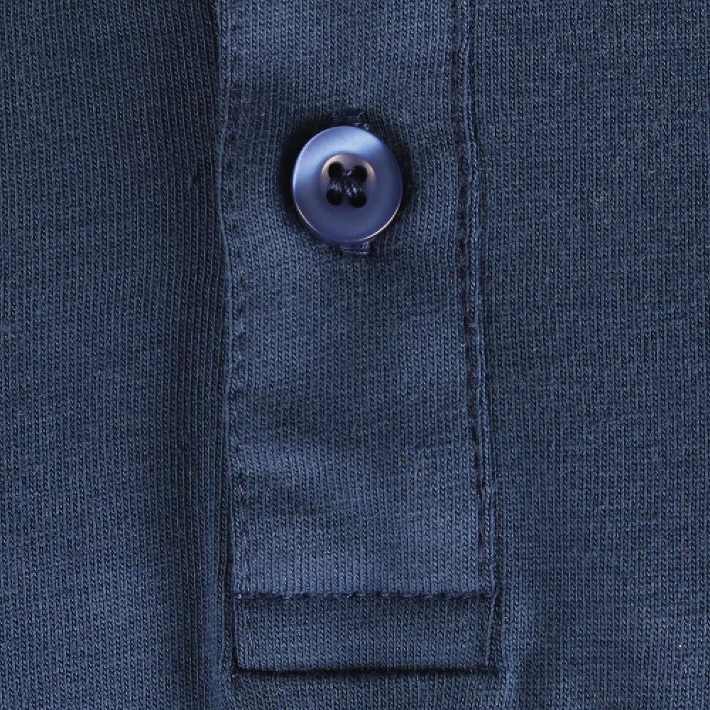 Dieses T-Shirt in Navy-Blau mit 3 Knöpfen an der Vorderseite ist als Basic in Ihrer Garderobe einfach unentbehrlich. Oben auf dem Rücken befindet sich der ebenfalls dunkelblaue, sehr subtile Aufdruck: „Big Green Egg“. Dieses langärmelige Big Green Egg-Shirt ist das ideale Outfit fürs Büro. Aber es passt auch prima unter einen bequemen Pulli oder ein Jackett/einen Blazer. Ein perfektes Shirt zum Drunterziehen, leicht und lässig. Der Innenkragen weist einen noblen grünen Kontraststreifen auf.