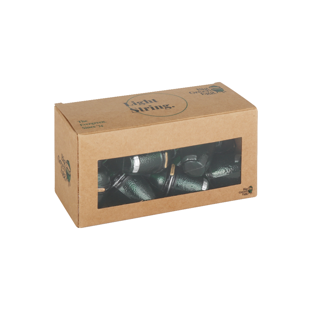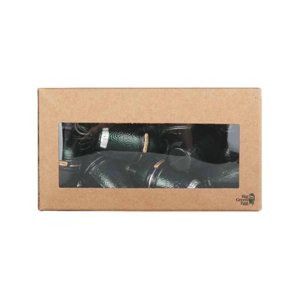 Mit dieser Lichterkette aus 10 Big Green Eggs als Miniaturausgabe verwandeln Sie Ihre Außenküche in ein stimmungsvolles Fleckchen Erde. Die Gesamtlänge der LED-Kette beträgt ± 120 cm (der Abschnitt mit den Lämpchen: ± 90 cm) und die LED-Lämpchen sind ± 5 cm groß.