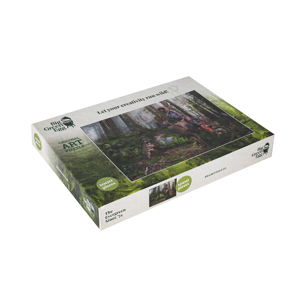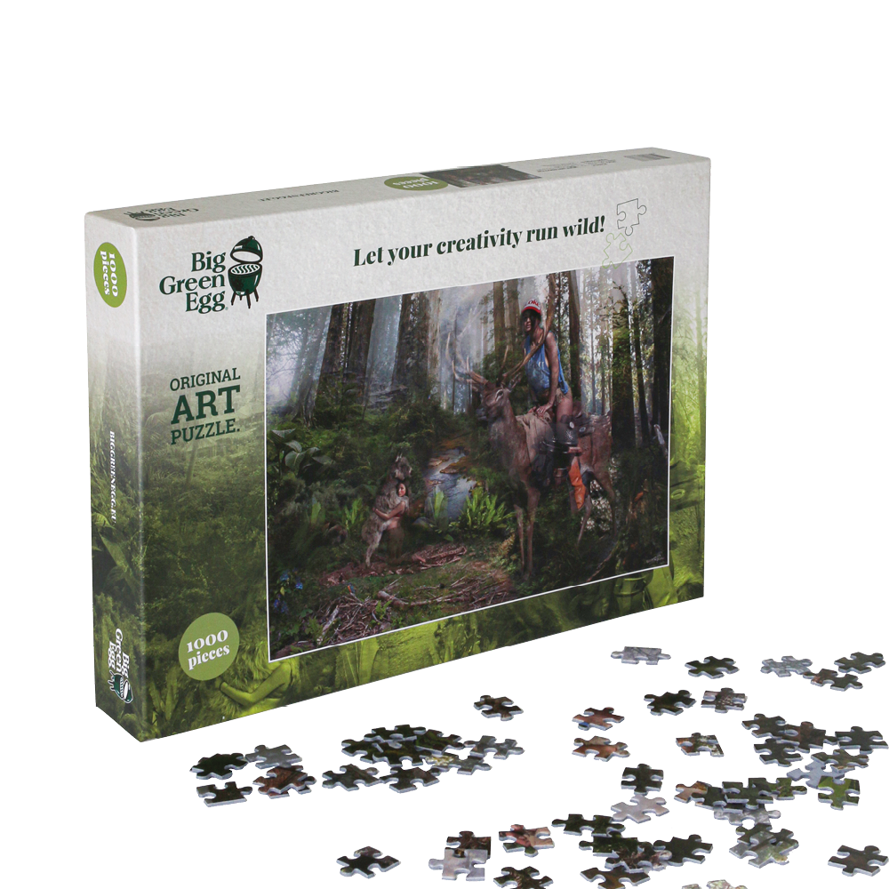 Die Abbildung auf diesem Puzzle ist ein Kunstwerk mit dem Titel „Titania & Bottom“, das in der Hauptniederlassung von Big Green Egg Europe im niederländischen De Lier einen prominenten Platz einnimmt. Du kannst dir dieses Kunstwerk nun als Puzzle ins Haus holen oder es an einen anderen Big Green Egg-Fan verschenken.