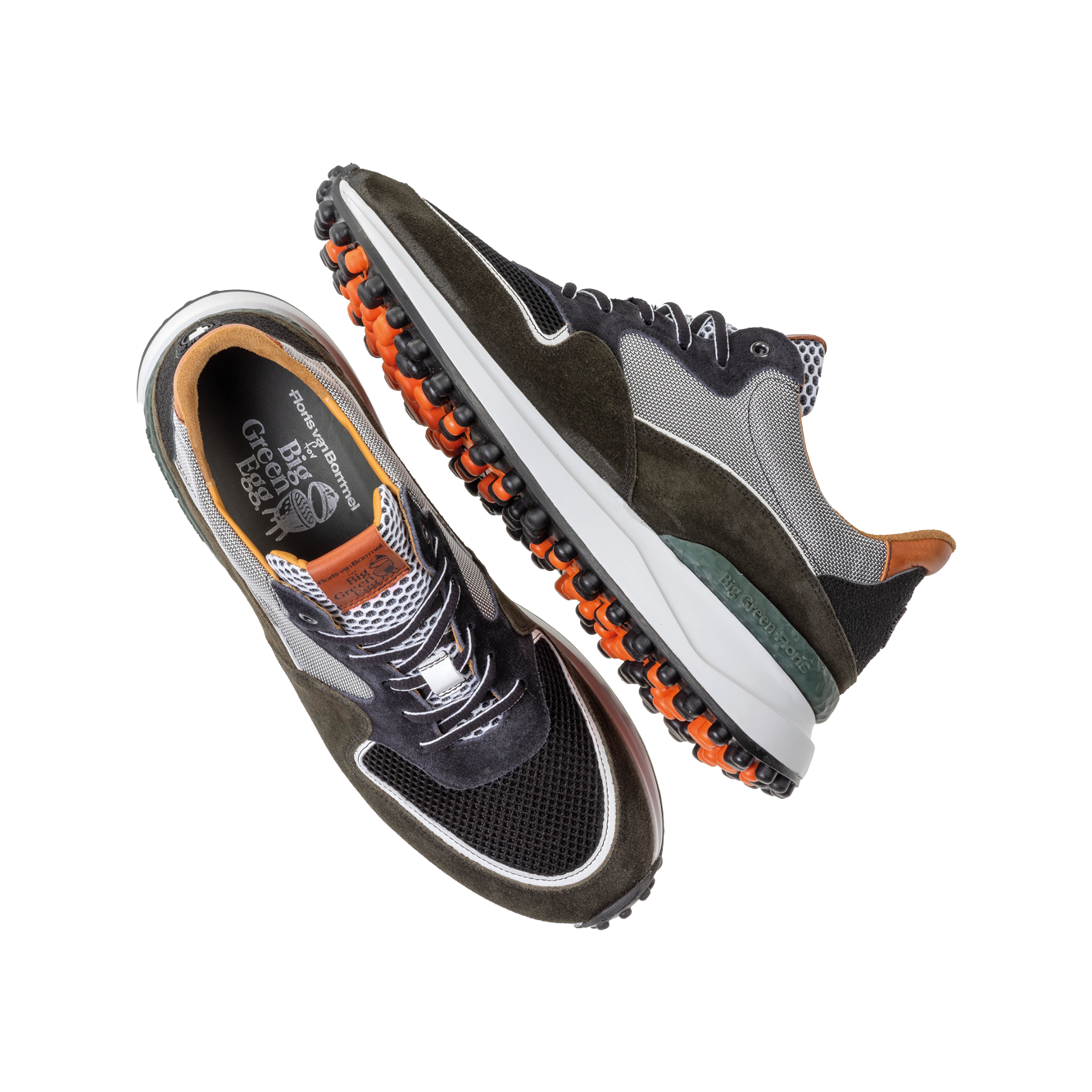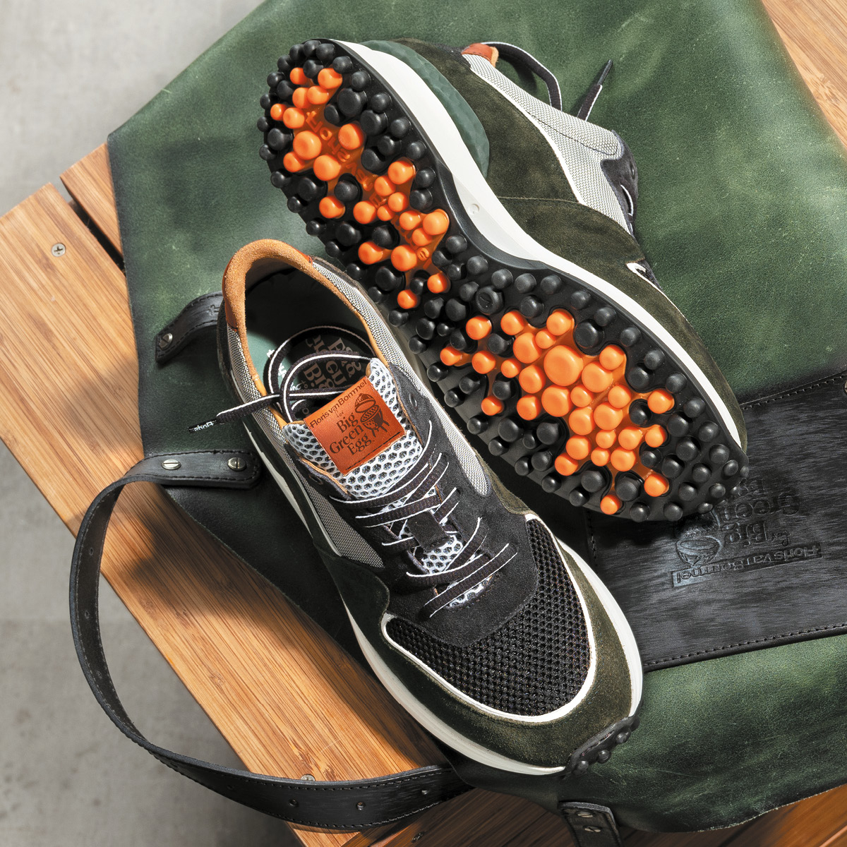 Sind Sie ein Big Green Egg-Fan und verfolgen aufmerksam die neuesten Kollektionen von Floris van Bommel? Dann können Sie es bestimmt kaum erwarten, diese einzigartigen Floris van Bommel for Big Green Egg Turnschuhe zu besitzen. Das Design dieser limitierten Auflage basiert auf dem beliebten “Noppi”-Trainer, mit einem Auge für besondere Big Green Egg-Details. Die Basis des Turnschuhs besteht aus grünem und anthrazitfarbenem Wildleder mit atmungsaktivem Hightech-Mesh im Vorfußbereich und glänzendem Nylon an der Seite des Turnschuhs. Die weiße Linie auf dem Schuh symbolisiert Rauch. Der unverwechselbare Look des grün eingedellten Keramikmaterials des Big Green Egg ist in das Gummi des Stabilisators an der Ferse eingearbeitet, und als zusätzliches Detail stellen die farbigen Stollen an der Sohle die glühende Holzkohle dar. Können Sie sich schon vorstellen, diese stilvollen und robusten Turnschuhe zu tragen?