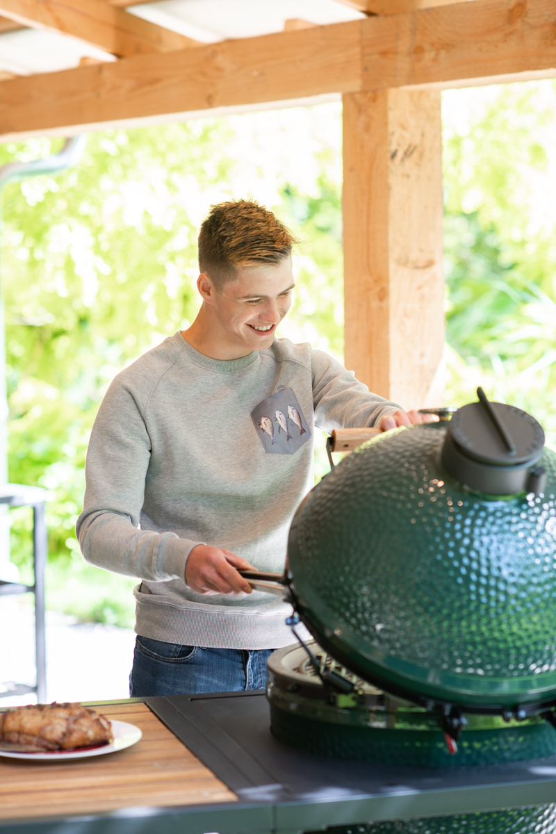 Der ideale Pullover für alle EGGheads, die es ganz schlicht und gleichzeitig ganz besonders lieben. Dieser hellgraue Pullover mit Raglanärmeln sieht eher schlicht aus, ist aber ein Kunstwerk für sich. Auf der linken Brust des Pullovers befindet sich eine Fischkunsttasche, die als besonderes Detail ein halb sichtbares, gesticktes Mini-Big Green Egg im gleichen Grauton wie die Brusttasche aufweist. Insgesamt wurden nur 100 dieser Pullover hergestellt. Unten links auf der Rückseite jedes Jumpers befindet sich ein kleines Etikett mit dem Big Green Egg-Logo und der Seriennummer dieses Sondermodells des Pullovers. Jeder Pullover ist daher ein echtes Einzelstück.