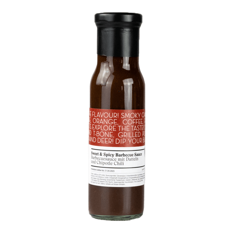 Die Sweet & Spicy Barbecue Sauce aus der Gewürzmühle darf bei keinem Grillevent fehlen. Aromen von Datteln, Apfel, Paprika und der geräucherten Chipotle Chili treffen auf die Frische von Zitronen und Kaffee. Diese herzhaft-würzige Sauce ist ‚Barbecue‘ in der besten Form und eignet sich zum Marinieren von Grillgut aller Art. Zu klassischen Steaks, Rippchen, Brisket und Pulled Pork macht diese Sauce eine ebenso gute Figur wie zu Geflügel und Wildfleisch.